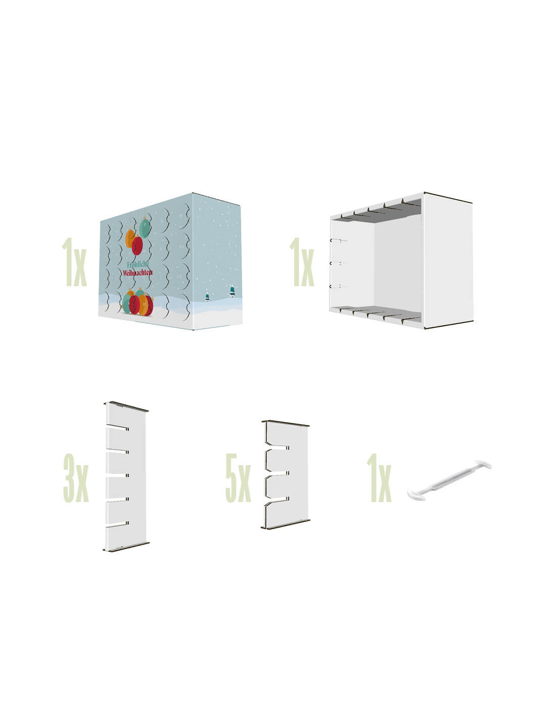 Wow - so lässt sich die Vorweihnachtszeit genussvoll feiern. Dieser fantastische Adventskalender bietet Platz zum Befüllen mit allerlei Kostbarkeiten: Lieblings-Smoothies, hausgemachte Kräuteröle, kleine Kosmetikproben oder liebevolle Nachrichten, die jeden Morgen ein Lächeln ins Gesicht zaubern. Kinder können sich auf lustige Bastelmaterialien, Mini-Spielzeuge oder ihre Lieblingsnaschereien freuen. Verleihen Sie dem Kalender Ihre persönliche Note und überraschen Sie Ihre Liebsten mit selbstgemachten Kreationen, die sie jeden Tag aufs Neue verzaubern. Passend für allerlei Fläschchen bis 250 ml Füllvolumen. zB Fruchtsaftflasche 250ml.